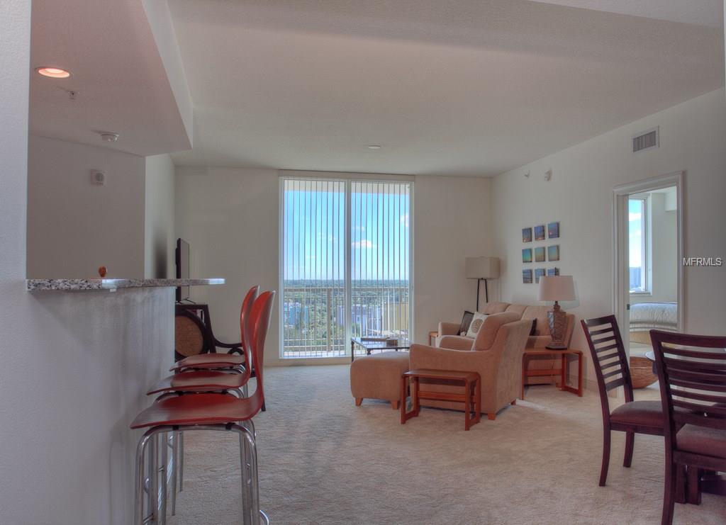 DOWNTOWN ALINARI TURNKEY FURNISHED. RESORT style living at the ALANARI. Newly Furnished and freshly painted and new carpet. Sunny open floor plan with large master suite with a king size bed and 40″ Flat screen TV, large walk in closet and master bathroom with garden tub and walk in shower. Living room/ dining room features a 50″ flat screen TV and a private terrace that overlooks the beautiful Community Pool and expansive cityscape vistas. Perfect kitchen with breakfast hi-bar, granite counter tops. Bedroom two features a queen size bed. Spacious laundry room. One car garage in secure parking garage and plenty of guest parking. Located on the 10th floor in the south tower within close proximity to the elevator. The Alinari provides every amenity you could need: a 24 hour concierge and security, meeting rooms, library, world class fitness center, heated pool with spa and waterfalls, wine room, media room, in-house movie theater, billiards, zen garden and outdoor grilling area. Walk to downtown and enjoy the restaurants, theater, opera, shopping and more. Walk along the water way and enjoy Sarasota’s sunsets. Cross the bridge to St Armands Circle for shopping, restaurants, and the beach. Three month minimum stay. Monthly rate for May through November is $2500.